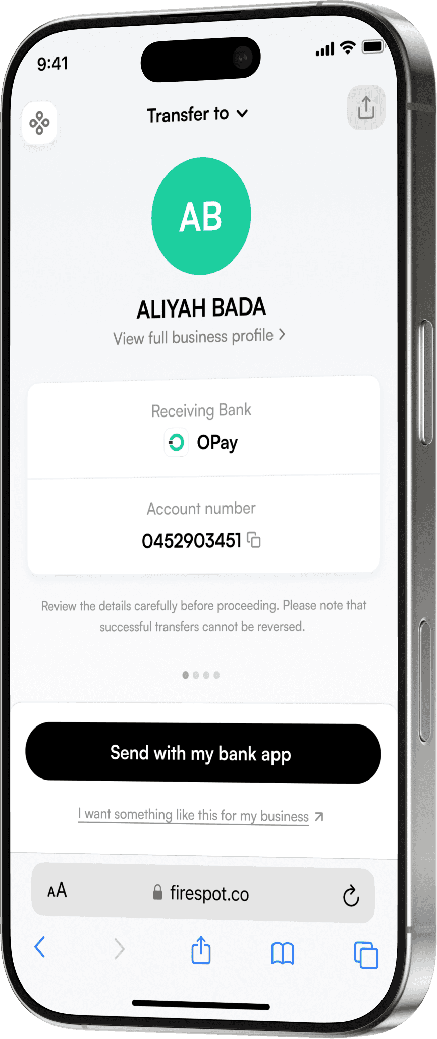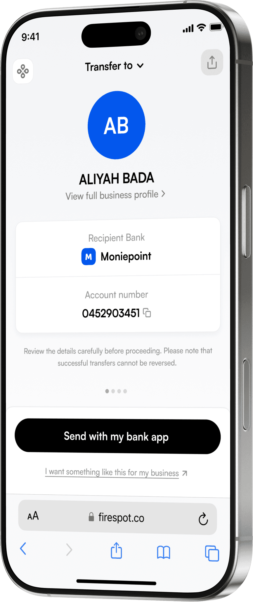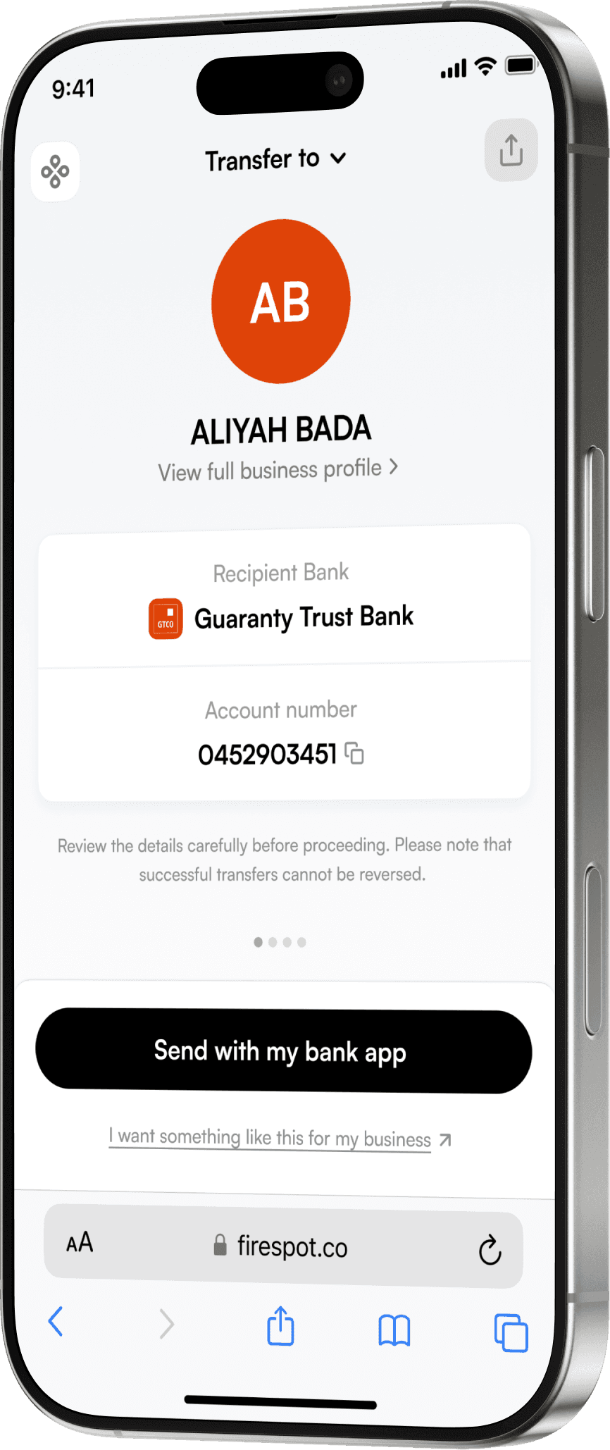 Customers complete transfers securely in their own bank apps.