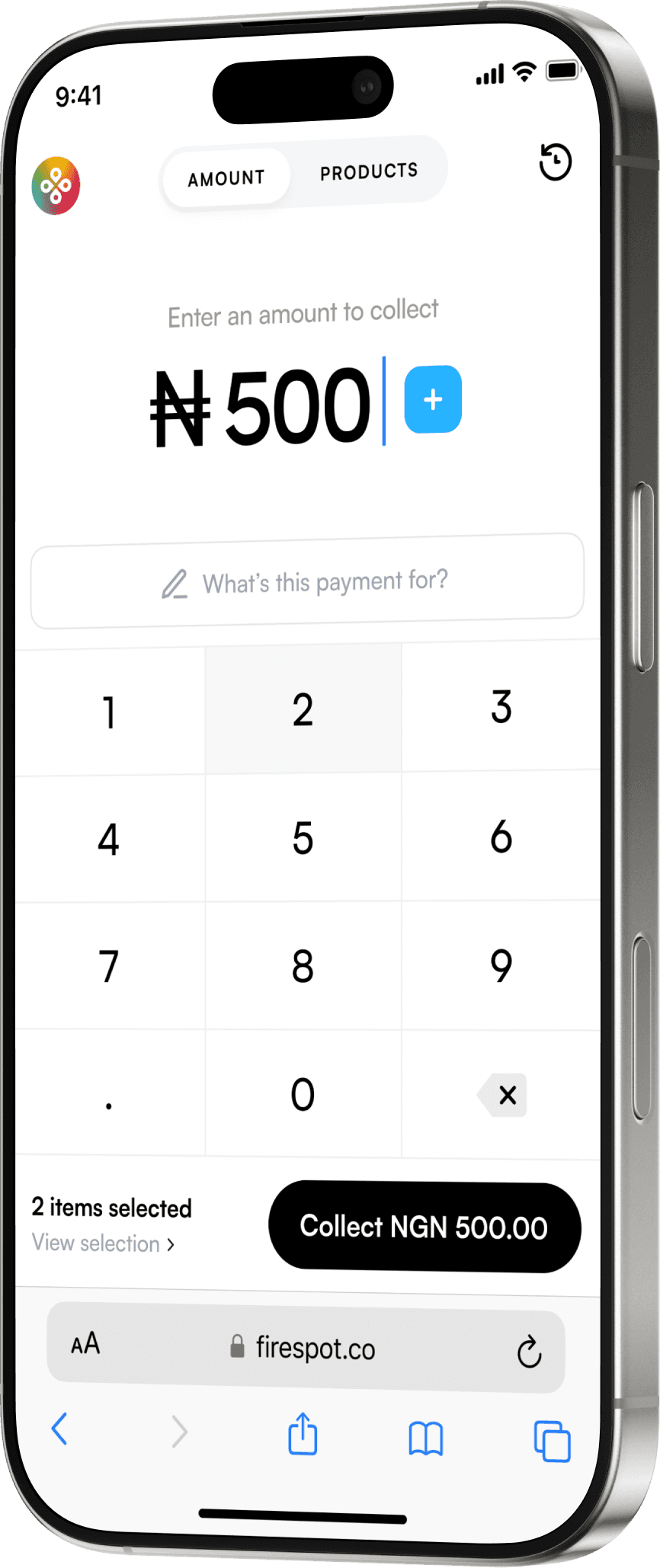 You set the amount or choose a product to be paid for.
